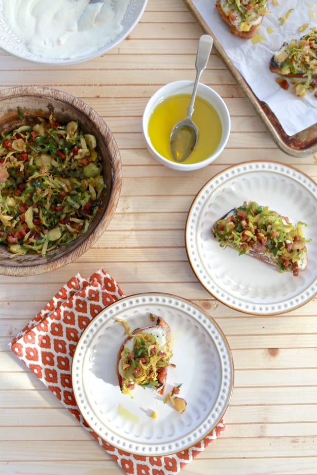 I love your new spin on brussel sprouts, something I vow to eat more of. And I like the idea of a crunchy toast bottom (hmmm, ok, that didn’t come out right, Ha, it’s Monday, right). Looks like an awesome Superbowl Appetizer to me. And I can’t get enough Vitamin D either, I live in Buffalo, NY, where there is not enough sun, I have to supplement with VIt D or I’d go crazy!!